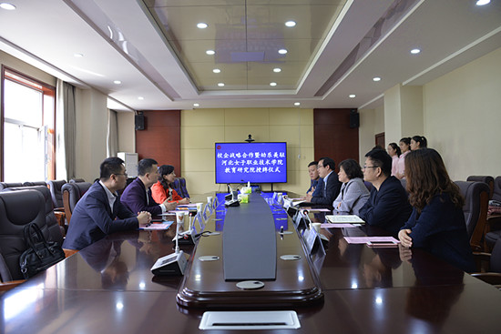 蓋春瑞院長從歷史沿革、辦學成就、專業建設、師資隊伍建設、招生就業等方面介紹了學院情況,表示將充分利用人才及科研優勢支持企業發展,希望依托幼樂美駐河北女子職業技術學院教育研究院的成立,助力學院學前教育專業建設和河北幼教事業的發展;田久民總經理介紹了幼樂美集團的發展歷程和未來規劃,表示將積極貢獻企業資源,與學院在人才培養、專業建設等方面進行更廣泛深入的合作,實現產教融合、優勢互補、校企雙贏。