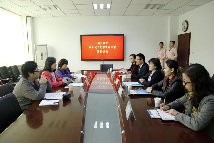 2014年10月28日,淡馬錫基金會新加坡工藝教育局師資學院副署長陳梅珠女士、師資學院主任蕭美玲女士、教師教育服務高級專員連娟女士等專家來院進行教學法評估。學院院長蓋春瑞、副院長徐愛新及相關教學系部負責人,同三位專家進行了親切友好的溝通交流,并詳細介紹了我院辦學歷史、發展成就和“以學生為本位”的職業教育教學法擴容培訓工作。