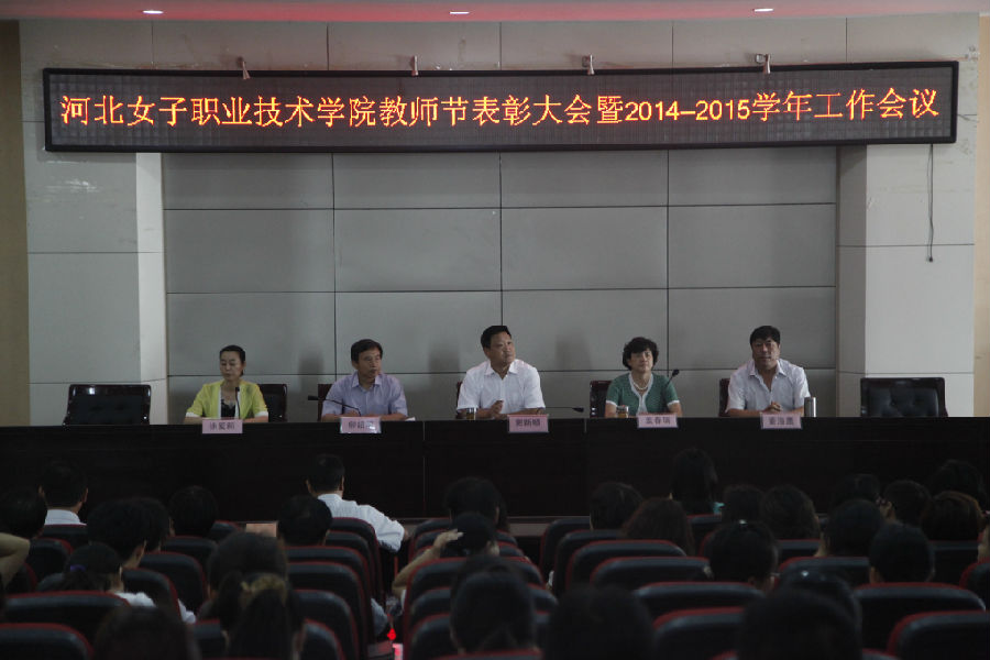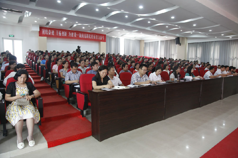 會(huì)上,蓋院長(zhǎng)做了《總結(jié)經(jīng)驗(yàn) 明確目標(biāo) 下大力氣 攻堅(jiān)克難 確保2014-2015學(xué)年各項(xiàng)工作再上新臺(tái)階》的講話(huà),對(duì)學(xué)院上學(xué)年工作進(jìn)行總結(jié),并安排部署新學(xué)年工作。蓋院長(zhǎng)在講話(huà)中指出,2013-2014學(xué)年,在省婦聯(lián)、省教育廳等上級(jí)部門(mén)的正確領(lǐng)導(dǎo)和大力支持下,學(xué)院深入貫徹落實(shí)全國(guó)職教工作會(huì)議和全省教育工作會(huì)議精神,圍繞“省級(jí)女性教育示范校建設(shè)”和第一屆黨代會(huì)形成的發(fā)展共識(shí),緊依靠廣大師生員工,在黨的群眾路線(xiàn)教育實(shí)踐活動(dòng)、改善民生、教育教學(xué)、學(xué)生管理、后勤服務(wù)、校園文化建設(shè)方面都取得了重要成就。被省教育廳確立為“重點(diǎn)建設(shè)的示范性高職院校”,被全國(guó)婦聯(lián)授予“全國(guó)三八紅旗集體”稱(chēng)號(hào);獲準(zhǔn)成立“河北省學(xué)前教育職業(yè)教育集團(tuán)”,成為我省學(xué)前教育領(lǐng)域的龍頭等等。蓋院長(zhǎng)在講話(huà)中還強(qiáng)調(diào),要充分利用全國(guó)職業(yè)教育工作會(huì)議、我省出臺(tái)《關(guān)于加快發(fā)展現(xiàn)代職業(yè)教育的實(shí)施意見(jiàn)》的有利時(shí)機(jī),進(jìn)一步厘清辦學(xué)思路,凝聚發(fā)展共識(shí),明確發(fā)展目標(biāo),突出發(fā)展特色,注重人本、秩序和責(zé)任意識(shí),牢固樹(shù)立以學(xué)生為本、以教師為本的思想,扎扎實(shí)實(shí)、一步一步把學(xué)院辦成能與省市職業(yè)名校(全國(guó)示范校)相比肩的一流名校。談到新學(xué)年工作,蓋院長(zhǎng)指出,新學(xué)年,學(xué)院要認(rèn)真學(xué)習(xí)貫徹國(guó)務(wù)院全國(guó)職業(yè)教育工作會(huì)議和習(xí)近平總書(shū)記重要批示精神,認(rèn)真落實(shí)我省《關(guān)于加快發(fā)展現(xiàn)代職業(yè)教育的實(shí)施意見(jiàn)》、《學(xué)院事業(yè)發(fā)展規(guī)劃(2012-2015)》及學(xué)院第一次黨代會(huì)工作部署,圍繞“省級(jí)女性教育示范校”建設(shè),一要加強(qiáng)思想宣傳工作,豎起女性教育示范的大旗;二要深化專(zhuān)業(yè)及課程改革,優(yōu)化人才培養(yǎng)計(jì)劃,深入推進(jìn)教學(xué)改革;三要做好“暖心?圓夢(mèng)”服裝班和“思利及人助學(xué)圓夢(mèng)護(hù)理班”兩個(gè)助學(xué)項(xiàng)目,深入做好學(xué)生工作,繼續(xù)拓展招生就業(yè)新途徑;四要拓展辦學(xué)渠道,強(qiáng)化與本科院校戰(zhàn)略合作關(guān)系,大力開(kāi)展多元化辦學(xué);五要導(dǎo)入5S質(zhì)量管理標(biāo)準(zhǔn)體系,加強(qiáng)軟硬件及信息化建設(shè),全面改善校園形象。