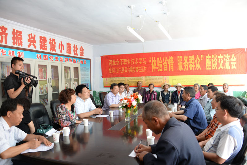 為進一步貫徹落實黨的十八大精神,培育和弘揚社會主義核心價值觀,引導我院廣大師生積極投身社會實踐,發揮社會實踐活動引導人、教育人、塑造人、激勵人的作用,根據省委教育工委等上級部門聯合下發的《2014年暑假河北省大學生和青年教師“體驗省情、服務群眾”主題實踐活動方案》的安排部署,6月28日,由我院黨委書記竇新順同志親任組長的省級社會實踐小分隊一行11人來到我院駐村點——張家口崇禮縣四臺嘴鄉轉枝蓮村,開展“體驗省情、服務群眾——女院人青春助基層”主題實踐活動。