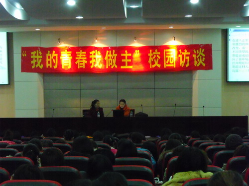 為扎實推進學院“女大學生素質教育工程”的全面落實,院團委積極開展豐富多彩的學生活動。2009年12月8日,“我的青春我做主”第二期主題性節目“健康的大學生活”在圖書館報告廳正式開播。社會工作系教師、白求恩醫院護士長張進老師接受了采訪。