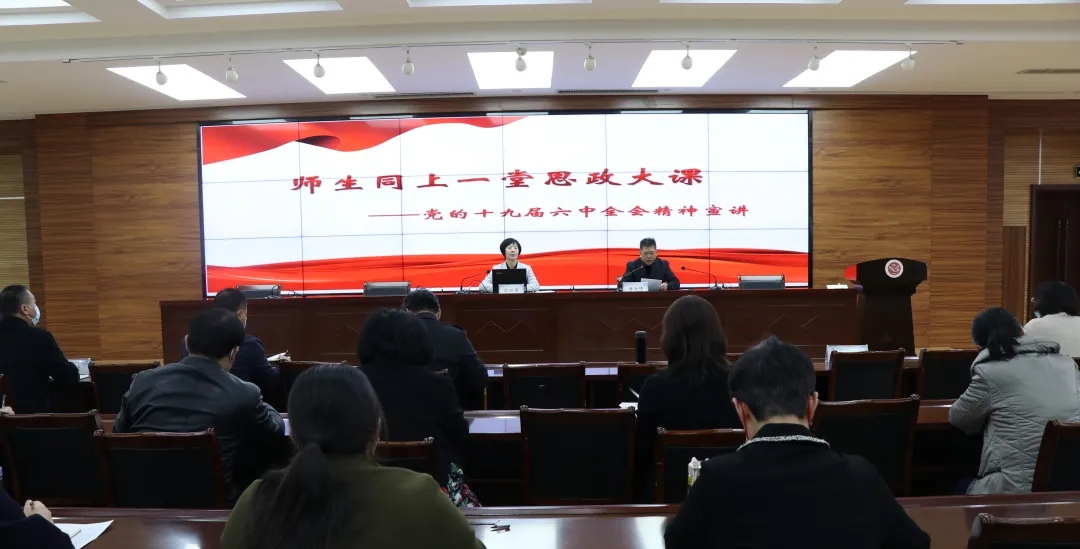 聚焦“怎樣學”,她強調,開展黨的十九屆六中全會精神的學習,是學院當前和今后一段時間的重大政治任務。一是要把學習全會精神作為重點內容、《決議》作為重點理論材料納入黨委理論學習中心組學習、專題讀書班、黨支部“三會一課”、主題黨團日等活動中;二是將全會精神學習納入各級黨員干部、教師、學生培訓的必修課程;三是廣大師生要通過讀原著、學原文,采用導學、自學、聯學、研學等多種形式的學習路徑和方法,原原本本學,逐字逐句讀,全面系統、完整準確把握黨的十九屆六中全會的核心要義、精神實質、實踐要求。