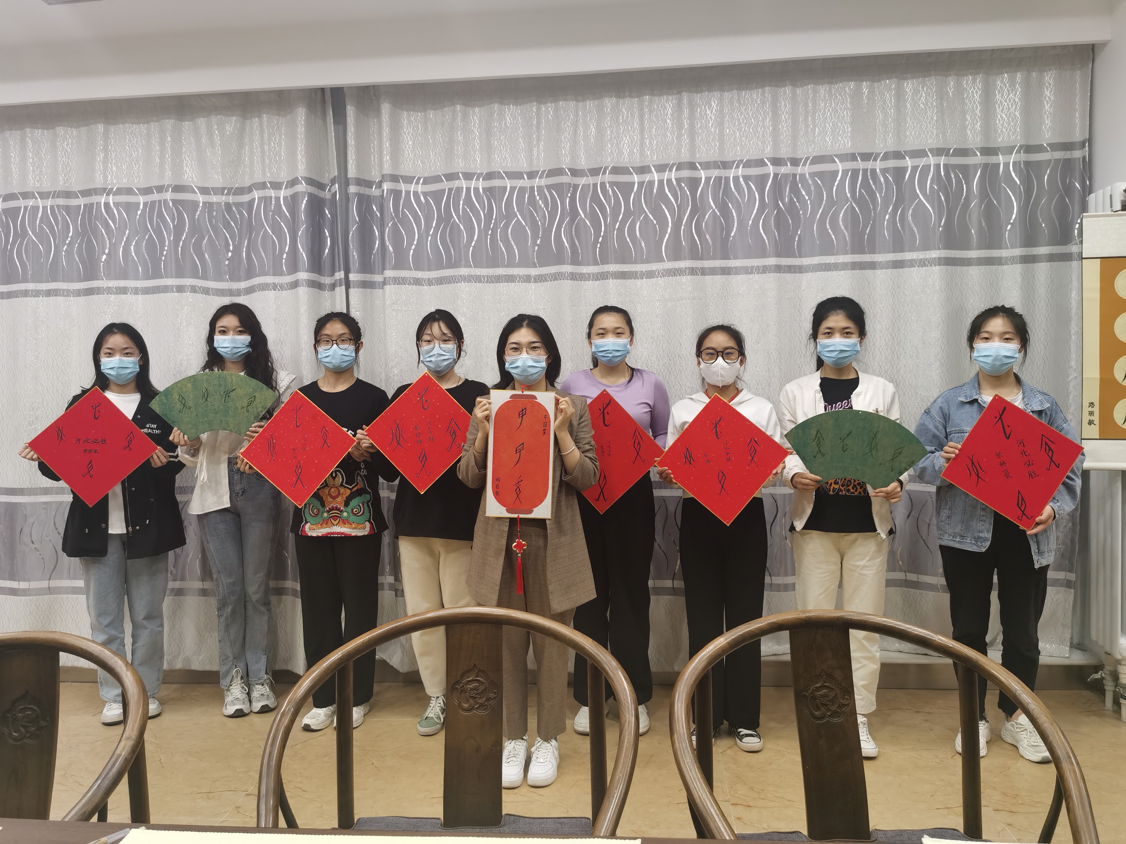 本次活動圍繞“抗擊新冠,女書助力”主題開展作品征集活動,師生書寫“中國必勝”“河北必勝”“女院必勝”等作品為大家加油鼓勁,并選出優(yōu)秀作品進行了集中展示。“非遺”女書班在王一博老師的悉心指導下,一直以來以傳承的力量傳遞著正能量。